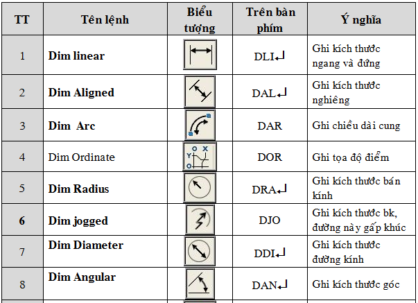 Các lệnh ghi kích thước và hiệu chỉnh kích thước trong AutoCAD